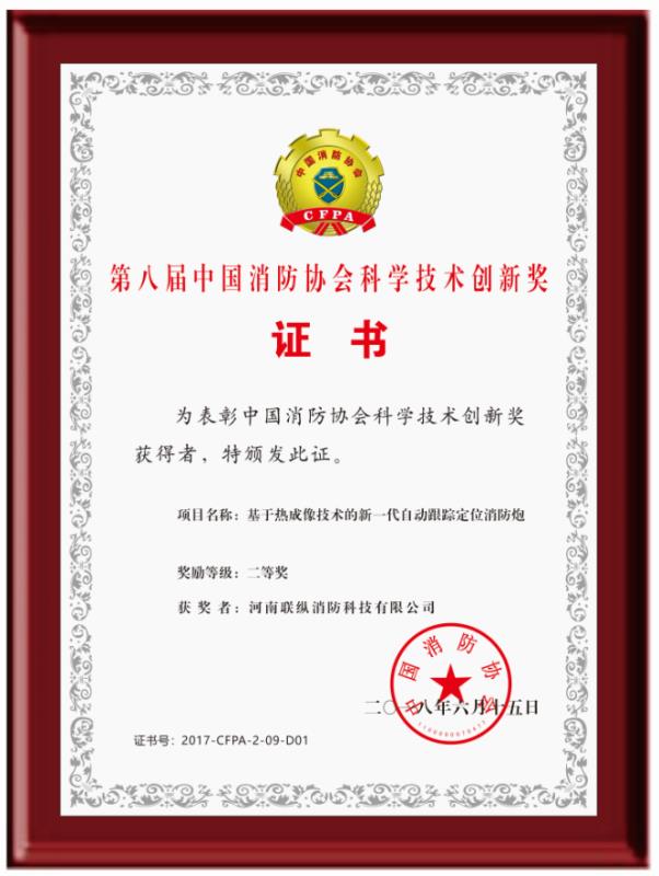 河南聯(lián)縱消防科技有限公司位于鄭州市高新區(qū)電子電器產(chǎn)業(yè)園,擁有專家團(tuán)隊(duì)和標(biāo)準(zhǔn)化工業(yè)廠房和實(shí)驗(yàn)場(chǎng),是一家以大空間智能消防水炮為主導(dǎo)的集科研、開(kāi)發(fā)、生產(chǎn)、銷售、服務(wù)于一體的高科技消防設(shè)備制造企業(yè)。 公司以“極致產(chǎn)品安天下”為宗旨,針對(duì)市場(chǎng)上普通消防水炮精準(zhǔn)度差、易誤噴、不能實(shí)時(shí)追蹤動(dòng)態(tài)火源、適用場(chǎng)所受限等缺陷,歷時(shí)6年,成功研發(fā)出了第II代自動(dòng)跟蹤定位射流滅火裝置系列產(chǎn)品。公司已通過(guò)了IS09001:208、IS014001:2004、OHSAS18001:2007、GB/T29490-2013等體系認(rèn)證,獲得專利授權(quán)三十多項(xiàng),取得國(guó)家級(jí)高新技術(shù)企業(yè)、消防行業(yè)誠(chéng)信示范單位、消防科技創(chuàng)新企業(yè)、第八屆中國(guó)消防協(xié)會(huì)科學(xué)技術(shù)創(chuàng)新獎(jiǎng),產(chǎn)品通過(guò)國(guó)家消防裝備質(zhì)量監(jiān)督檢驗(yàn)中心檢驗(yàn),并獲得了公安部消防產(chǎn)品合格評(píng)定中心頒發(fā)的消防產(chǎn)品認(rèn)證證書(shū)。 第II代自動(dòng)跟蹤定位射流滅火裝置采用熱成像+捷聯(lián)制導(dǎo)技術(shù),集自動(dòng)報(bào)警、動(dòng)火追蹤、自動(dòng)滅火、視頻監(jiān)控四位一體,具有可靠性高、精準(zhǔn)度好、性能穩(wěn)定、安裝操作方便、智能化程度高、應(yīng)用環(huán)境廣泛等特點(diǎn)。公司產(chǎn)品自上市以來(lái),已經(jīng)有數(shù)萬(wàn)臺(tái)產(chǎn)品被安裝在了數(shù)千個(gè)工程項(xiàng)目中,先后參加了幾十次國(guó)內(nèi)外消防展,贏得了各界人士的一直好評(píng),被央視《我愛(ài)發(fā)明》欄目發(fā)現(xiàn)后,央視編導(dǎo)組對(duì)產(chǎn)品性能進(jìn)行了數(shù)十天的實(shí)驗(yàn)和拍攝,先后在以下節(jié)目播出: CCTV-10《我愛(ài)發(fā)明》之“烈火哨兵”、CCTV-10《實(shí)驗(yàn)現(xiàn)場(chǎng)》之“滅火試驗(yàn)”、CCTV發(fā)現(xiàn)之旅《品質(zhì)》之“智慧消防 守護(hù)一生”、 CCTV-17新改版《我愛(ài)發(fā)明》之“智能水炮”...